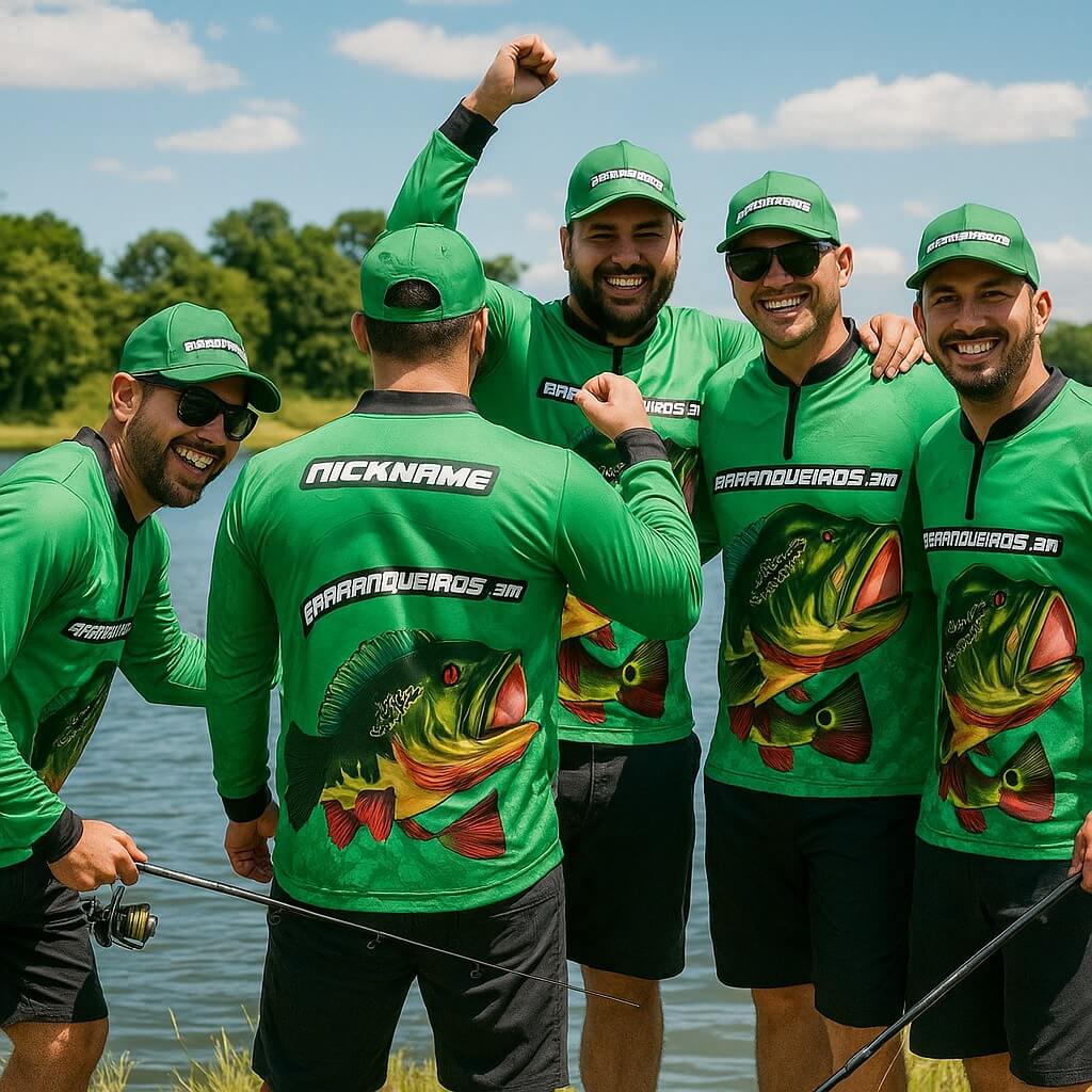 Para seu grupo ou negócio, torne cada pescaria inesquecível com camisetas que não só simbolizam sua paixão pela pesca, mas também refletem a essência do seu negócio!
